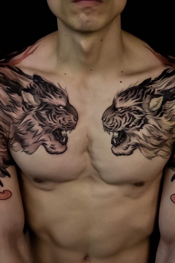Placement Considerations – Decide whether you want a full chest tattoo for a bold, dramatic look or a one-sideddesign for a more subtle aesthetic.