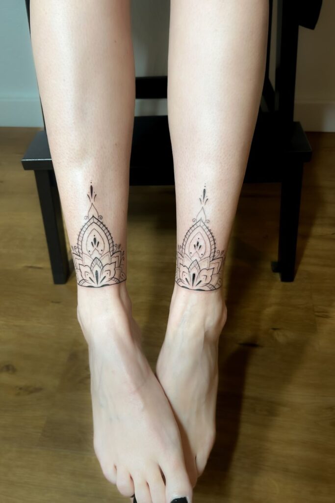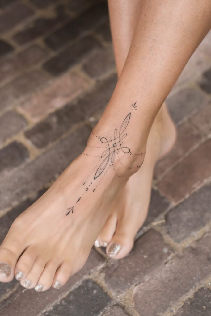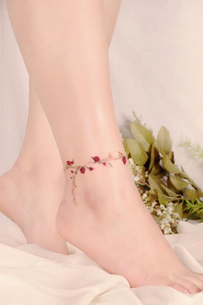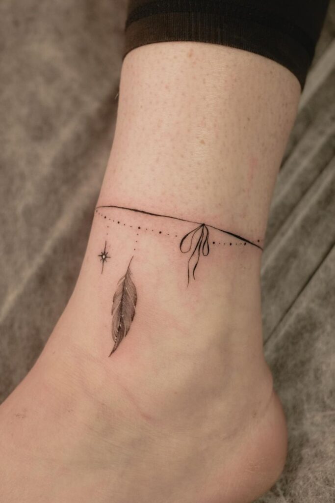 You’ll also want to consider the placement. Do you want the tattoo to sit just above the ankle bone? Or would you prefer it to wrap around like a simple anklet tattoo or an ankle bracelets tattoo for women?