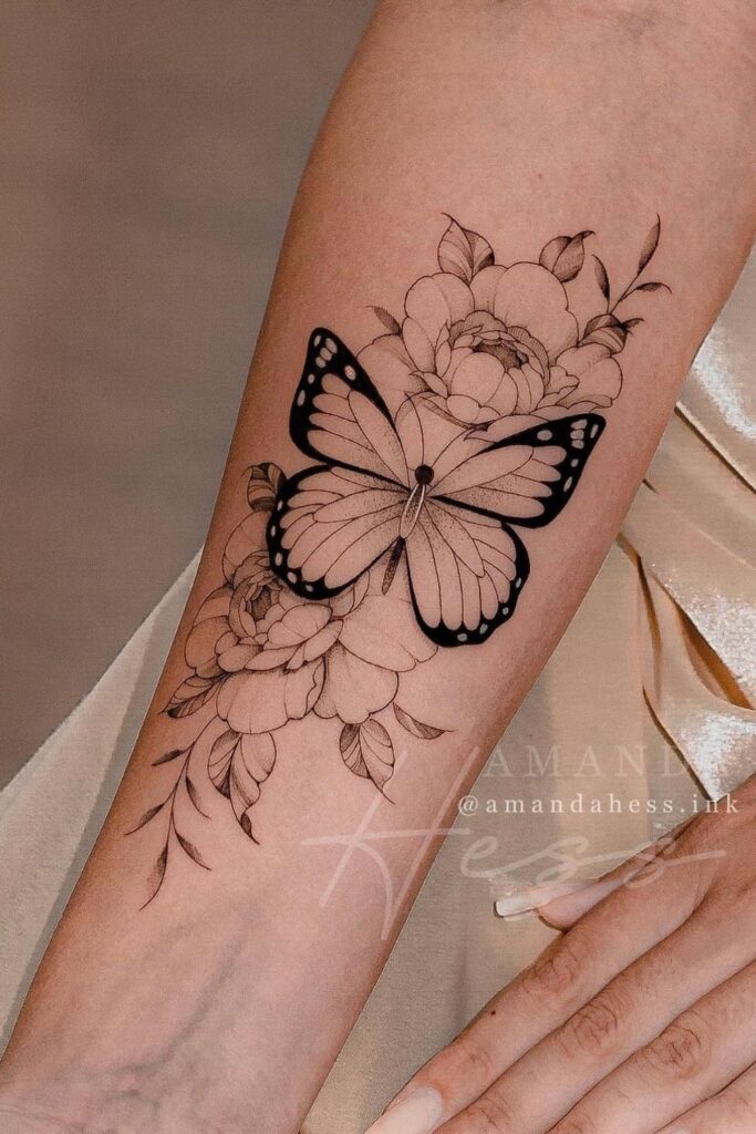It’s subtle when your arm is relaxed but makes a striking impression when you move. A butterfly arm tattoo placement here can feel dynamic, as if the wings are coming to life.