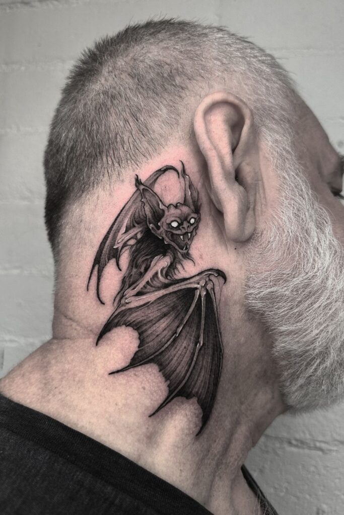 Ideal for fans of gothic bat tattoos, mythology, or those who feel drawn to the unseen, this design works best for someone unafraid to wear their dark side with pride.