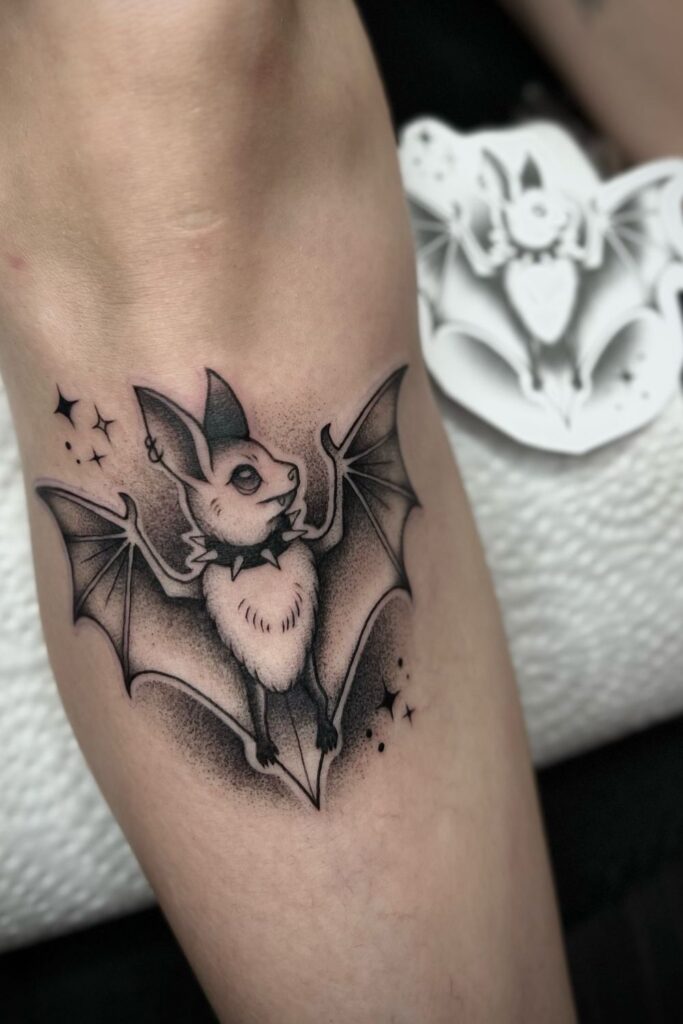 A cute bat tattoo can show a more playful, quirky, or light-hearted side.
