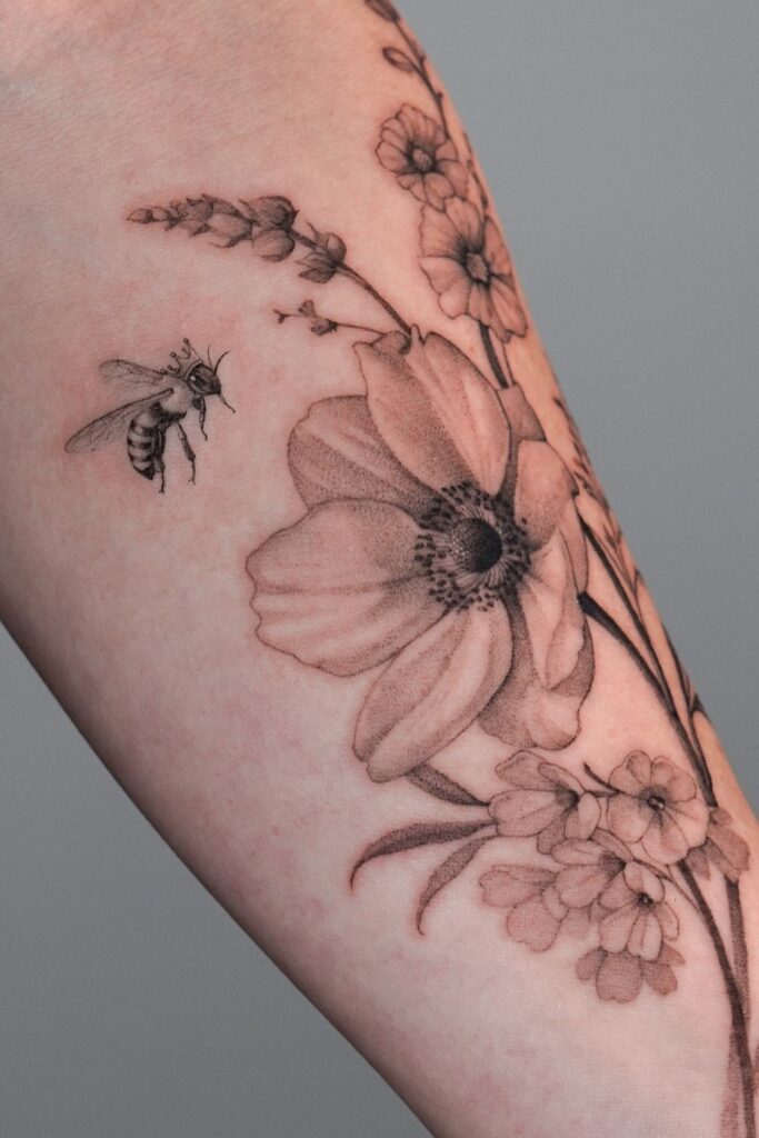Bee and Flower Tattoos