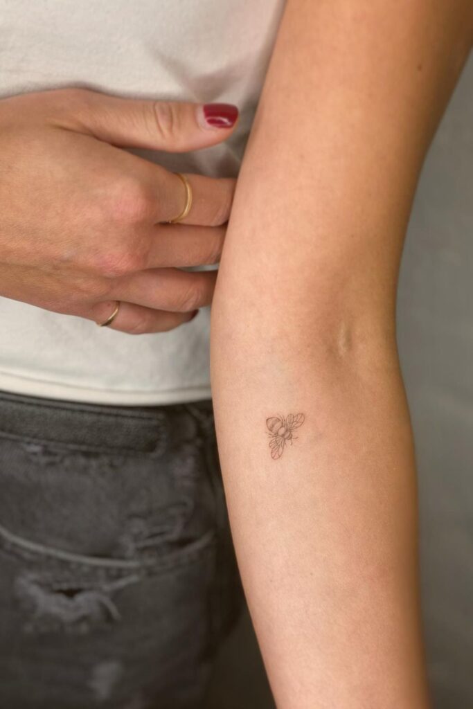 These subtle bee tattoos focus on simplicity and clean lines, making them ideal for anyone who loves refined, elegant designs.