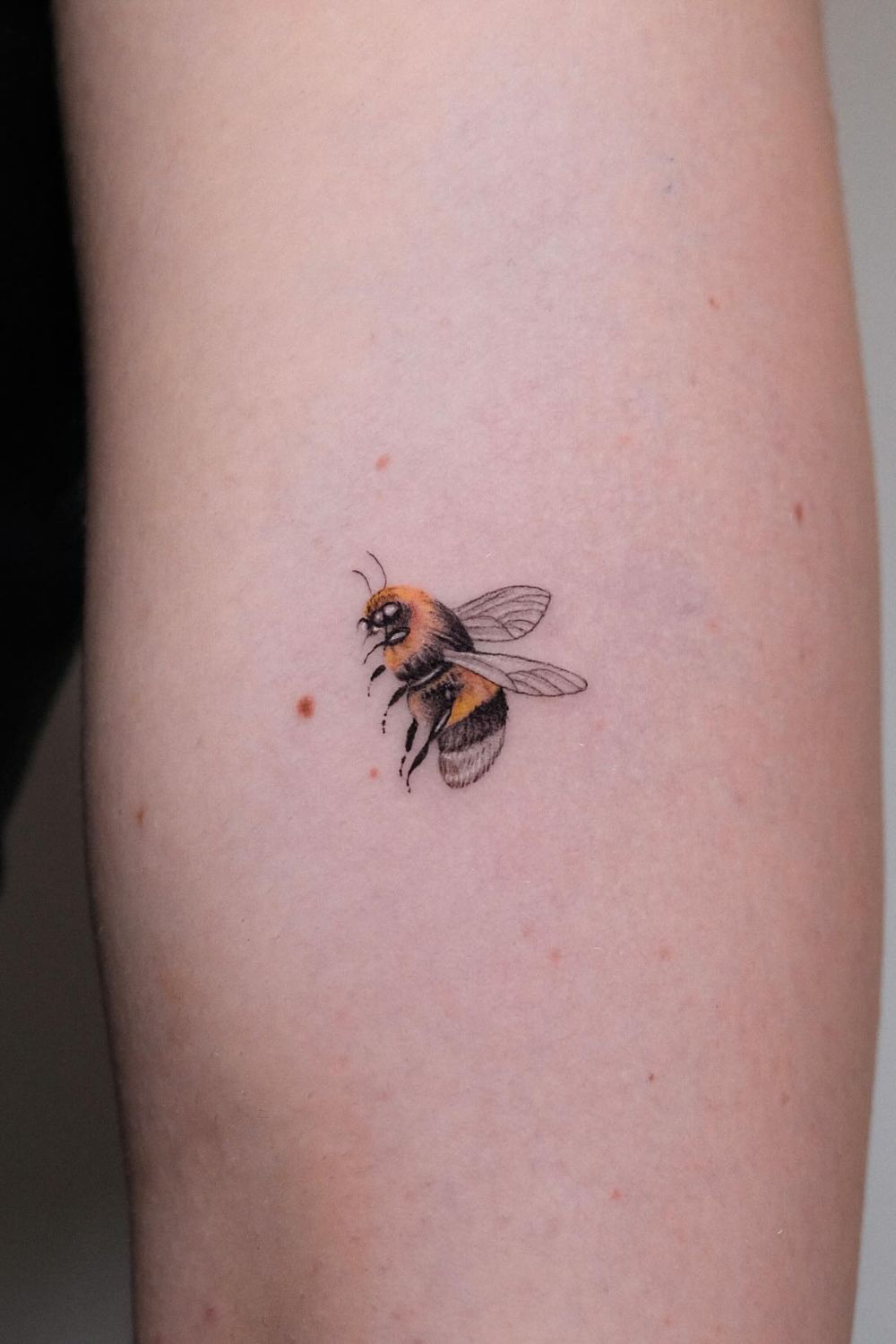 Bursting with personality, colorful bee tattoos use vibrant yellows, oranges, and sometimes full-spectrum hues to make the design pop.