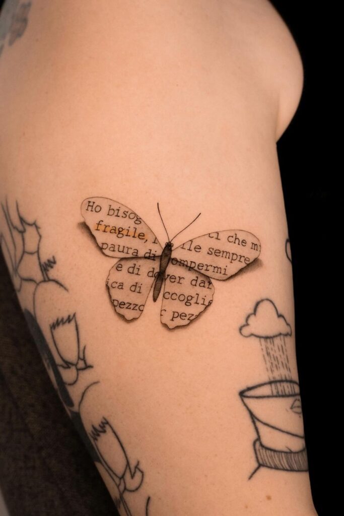 A butterfly tattoo with words can feel like a tiny affirmation on your skin, while a butterfly tattoo with a meaningful quote gives you room to express a fuller message.