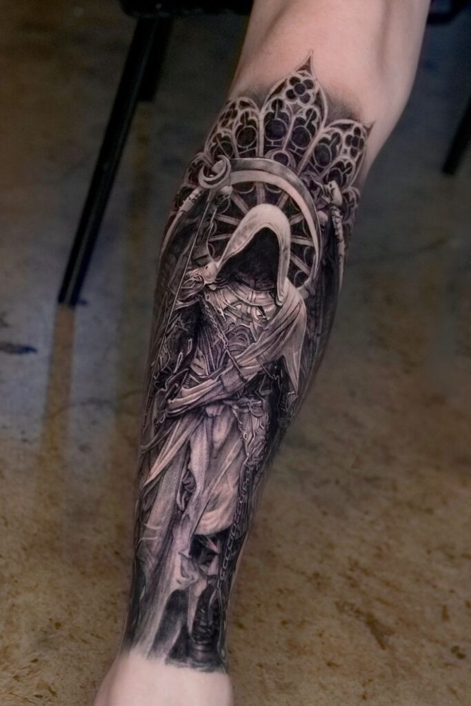Grim Reaper Gothic Calf Tattoo: A Dark and Mystical Statement