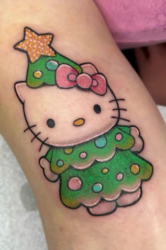 A Christmas tattoo often represents joy, nostalgia, and togetherness.
