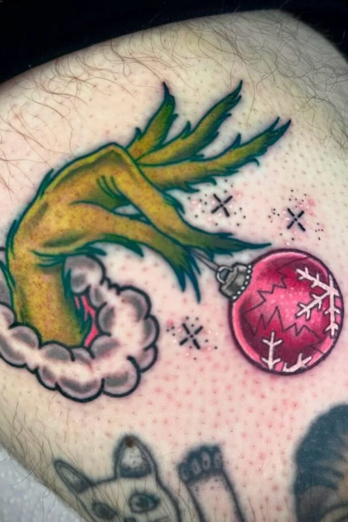 1) The Grinch Tattoo – Playful Holiday Rebel