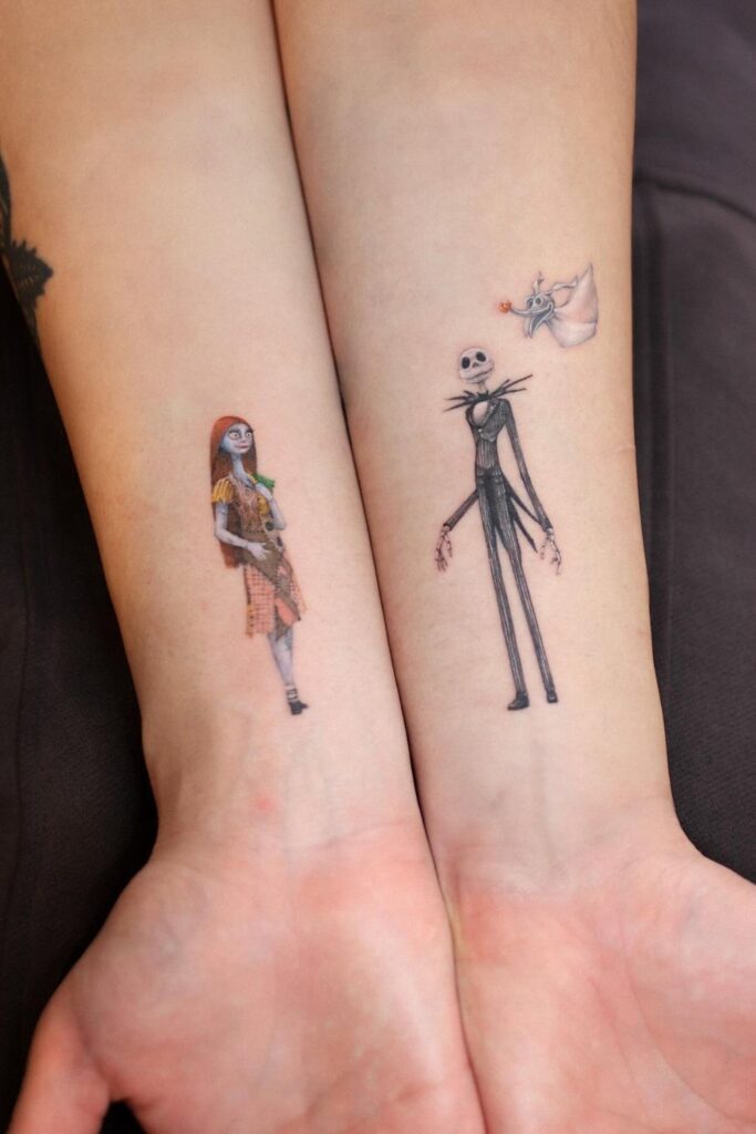 For fans of Tim Burton, the nightmare before christmas tattoo is a perfect way to celebrate both spooky and festive vibes.