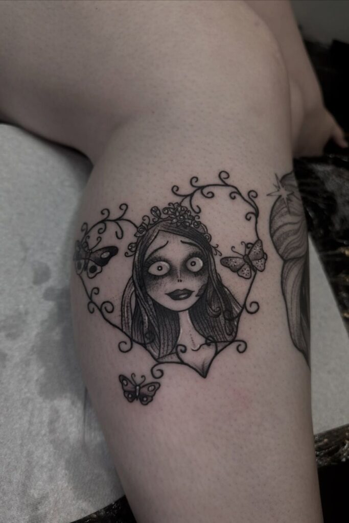 This style works for people who connect emotionally with Emily’s story and want a corpse bride Emily tattoo that feels both personal and artistic.
