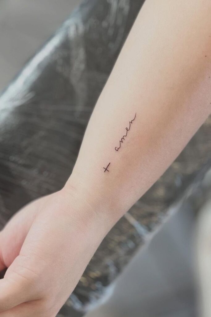 Some of the most powerful cross tattoo ideas come to life when paired with words.