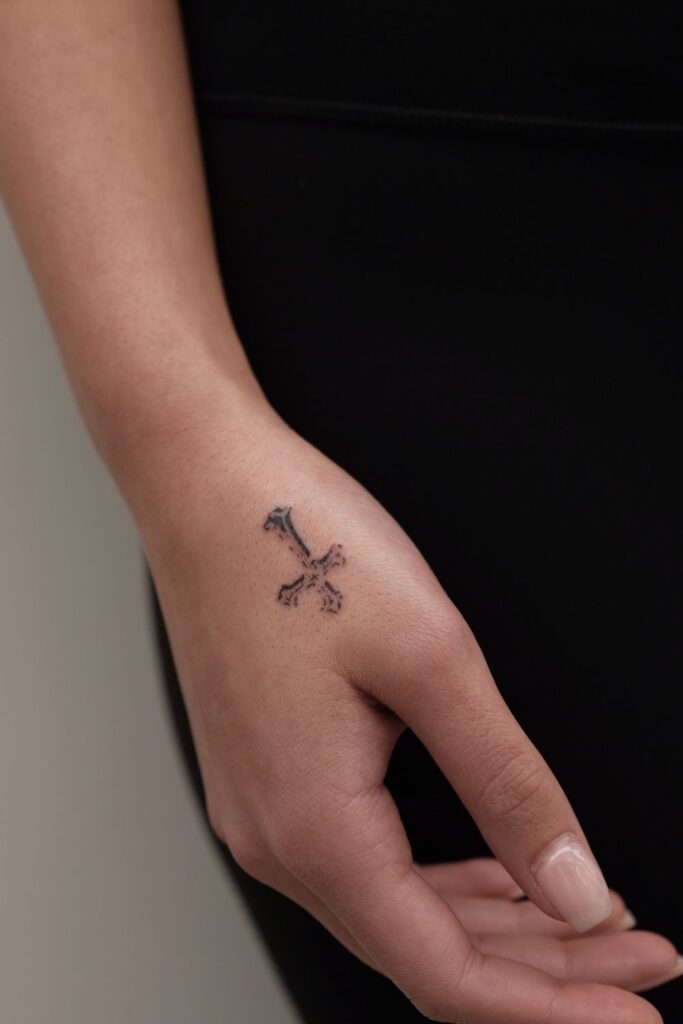 The side of the hand allows for a vertical, elongated look that’s perfect for fine-line or aesthetic cross tattoo styles.