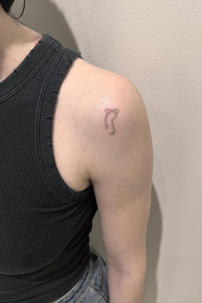 Delicate and softly tied, this thin-lined bow by liqfromthewood sits sweetly on the shoulder, embodying grace, femininity, and simplicity.