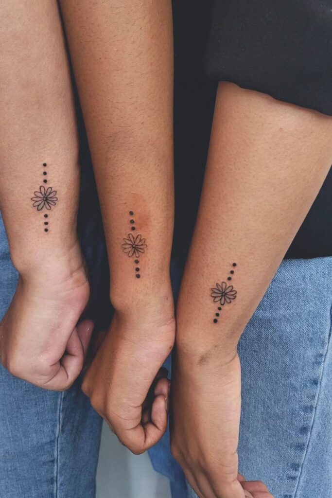 Perfect for a trio of best friends or sisters, this matching design speaks of unity and shared growth.