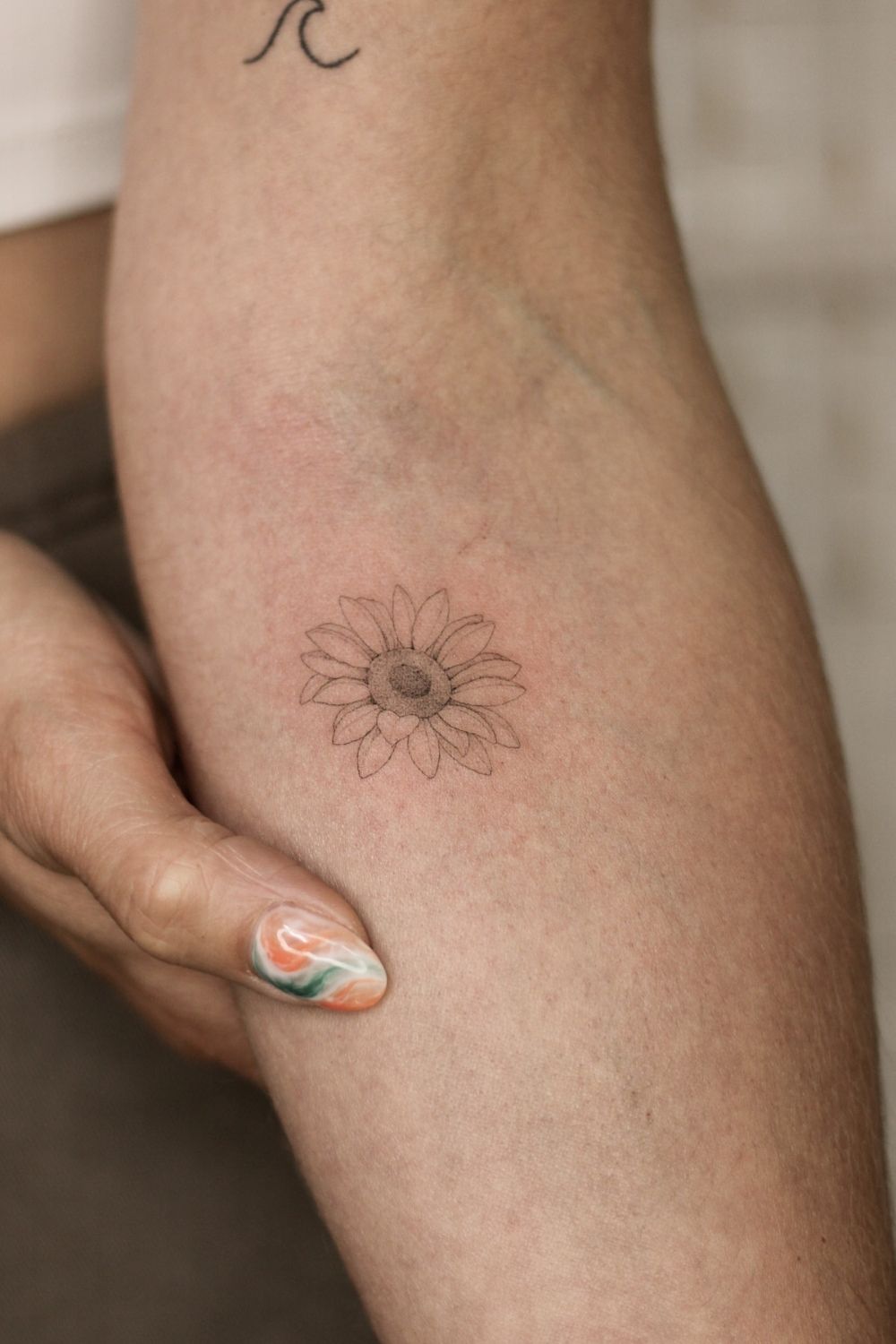 This one is perfect for those drawn to small dainty tattoos with a cheerful spirit, especially anyone who finds joy in nature and meaningful florals.