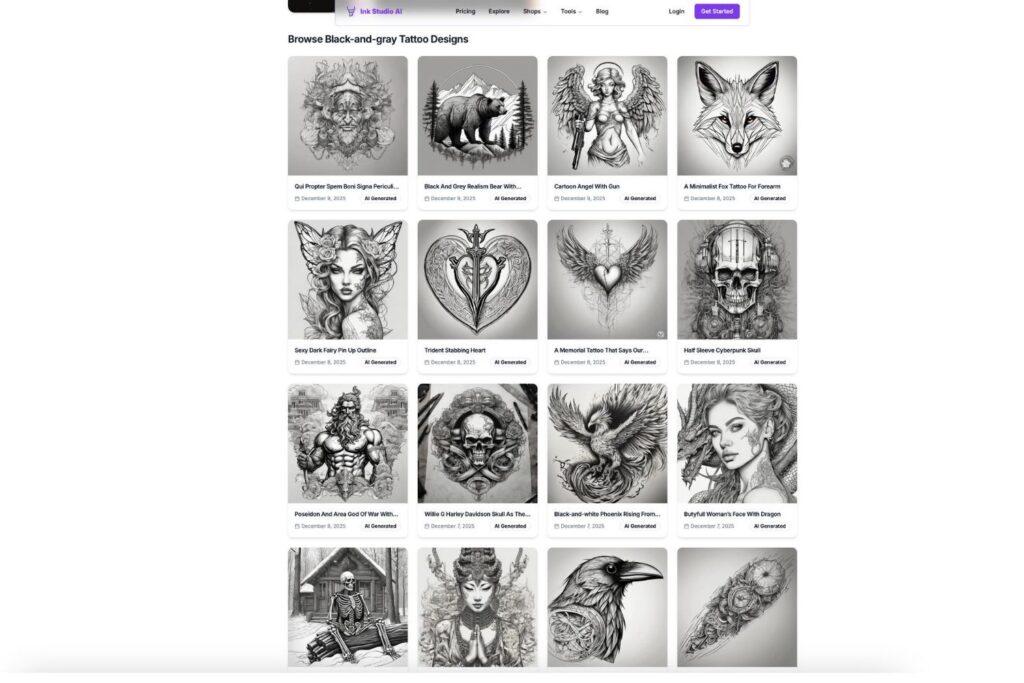 Whether you’re drawn to soft shading or bold lines, minimalist symbols or full compositions, Ink Studio AI produces options you can choose from or modify further.