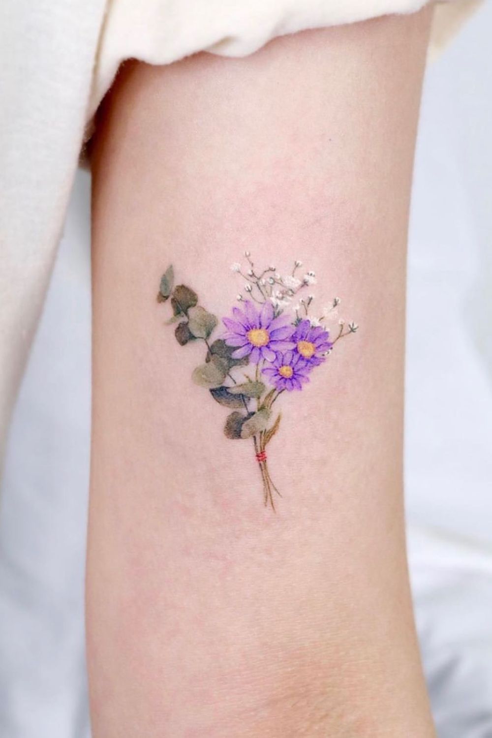 A flower bouquet tattoo placement is a favorite for people who want to weave different meanings together.