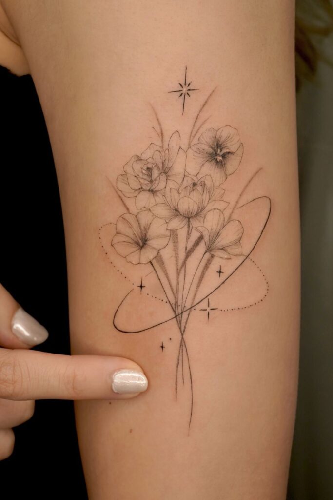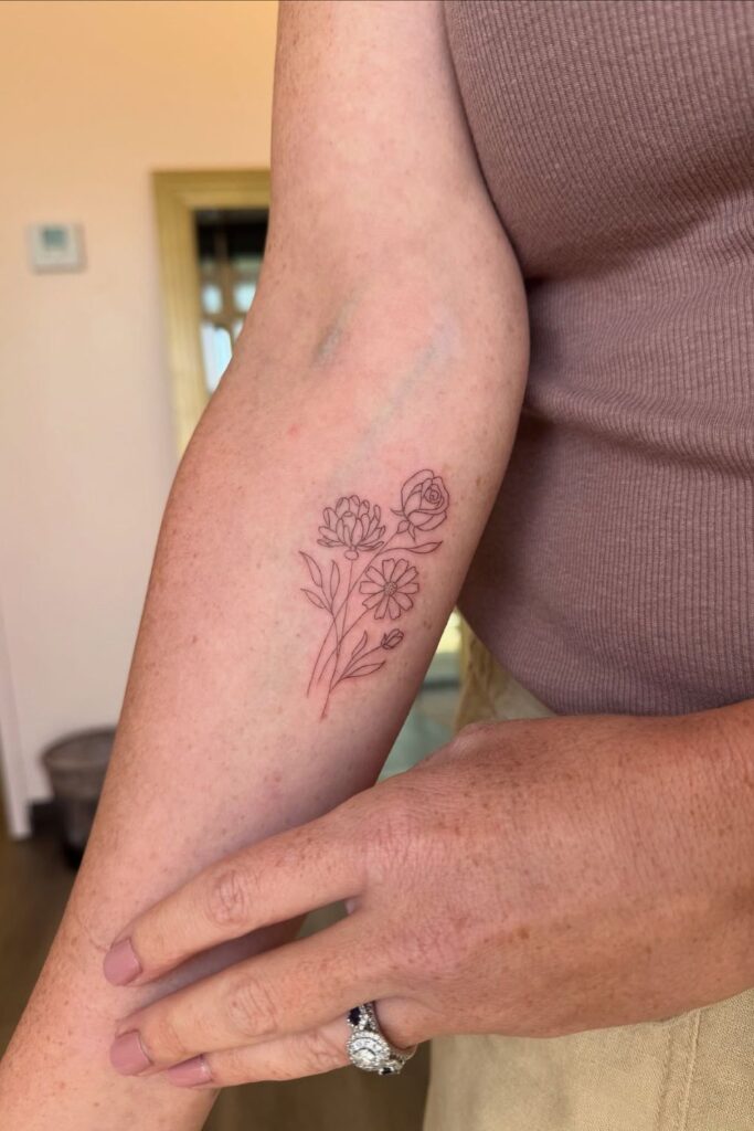 Lately, many women are choosing designs like a simple bouquet of flowers tattoo or a cute flower tattoo for women, blending tiny blossoms into soft, meaningful artwork.