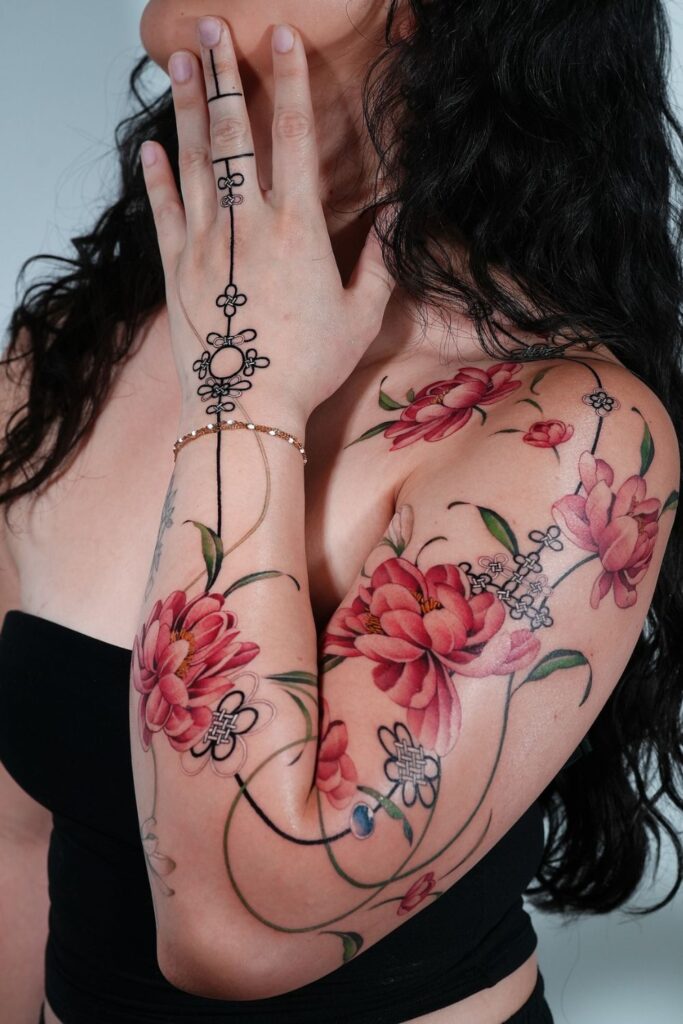 If you’re ready to make a big statement, flower sleeve tattoos for women are a breathtaking way to tell your story.