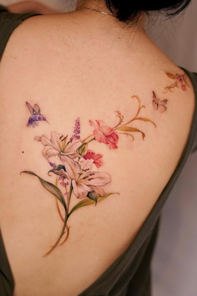 The back is one of the most stunning places for floral ink.