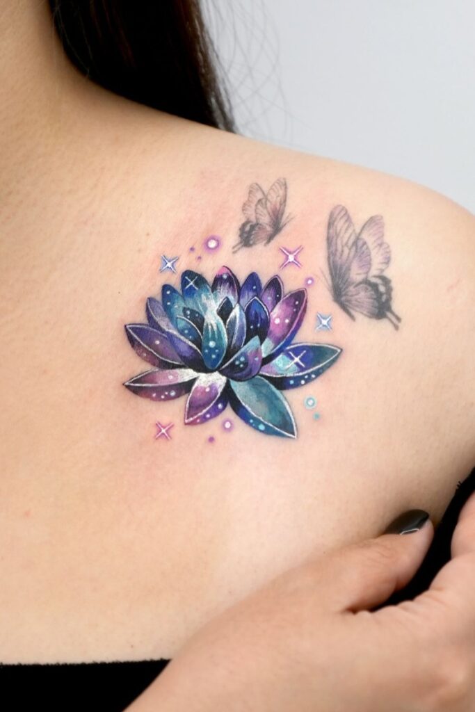 Lotus flower tattoos are known for their powerful symbolism, often representing strength, growth, and inner peace.
