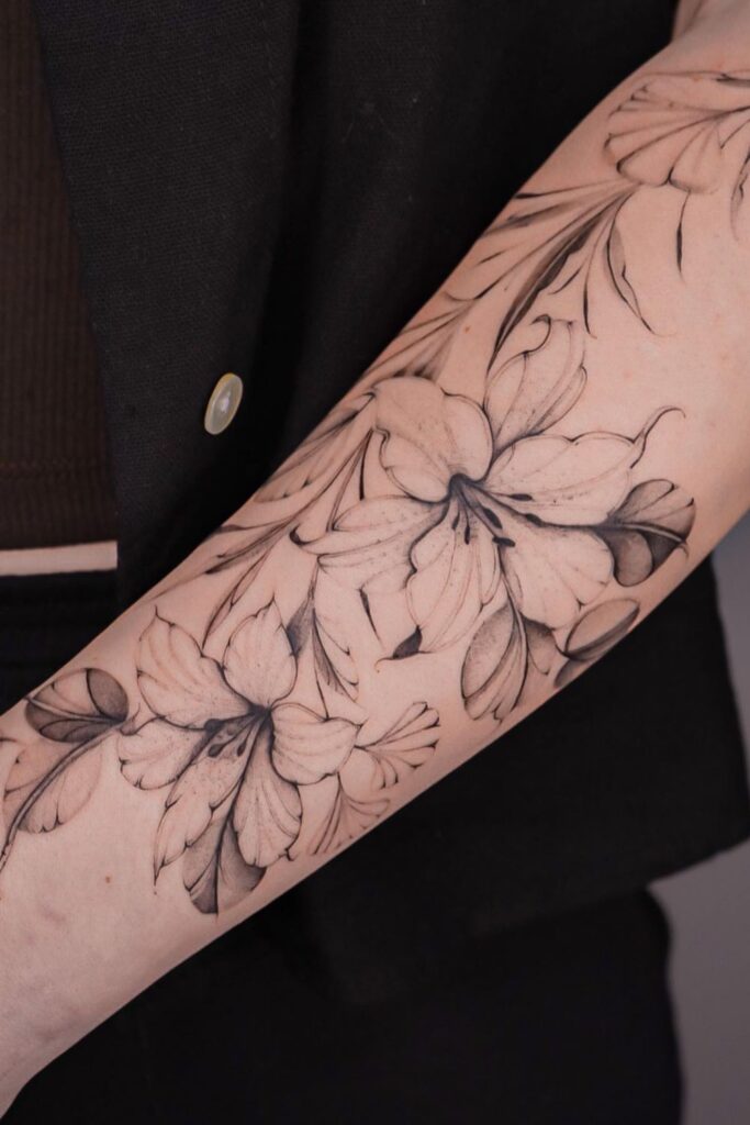 Lilies are classic and elegant, making them one of the most popular floral tattoo choices.