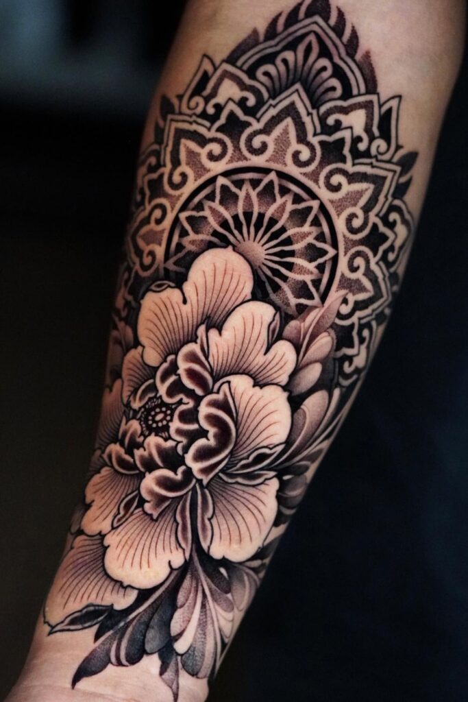 For women drawn to spiritual or artistic expression, mandala flower tattoos are a popular choice.