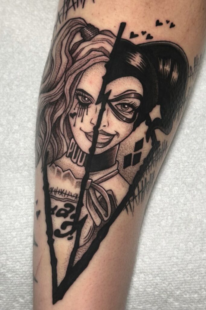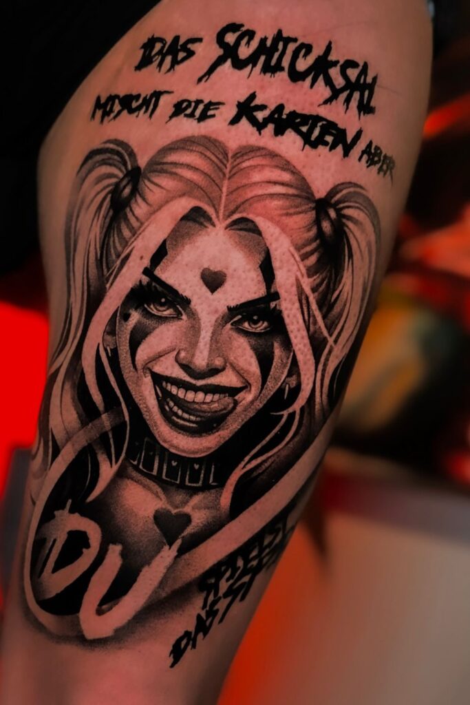 A harley quinn tattoo is more than ink; it’s a statement of strength, rebellion, and playful chaos.