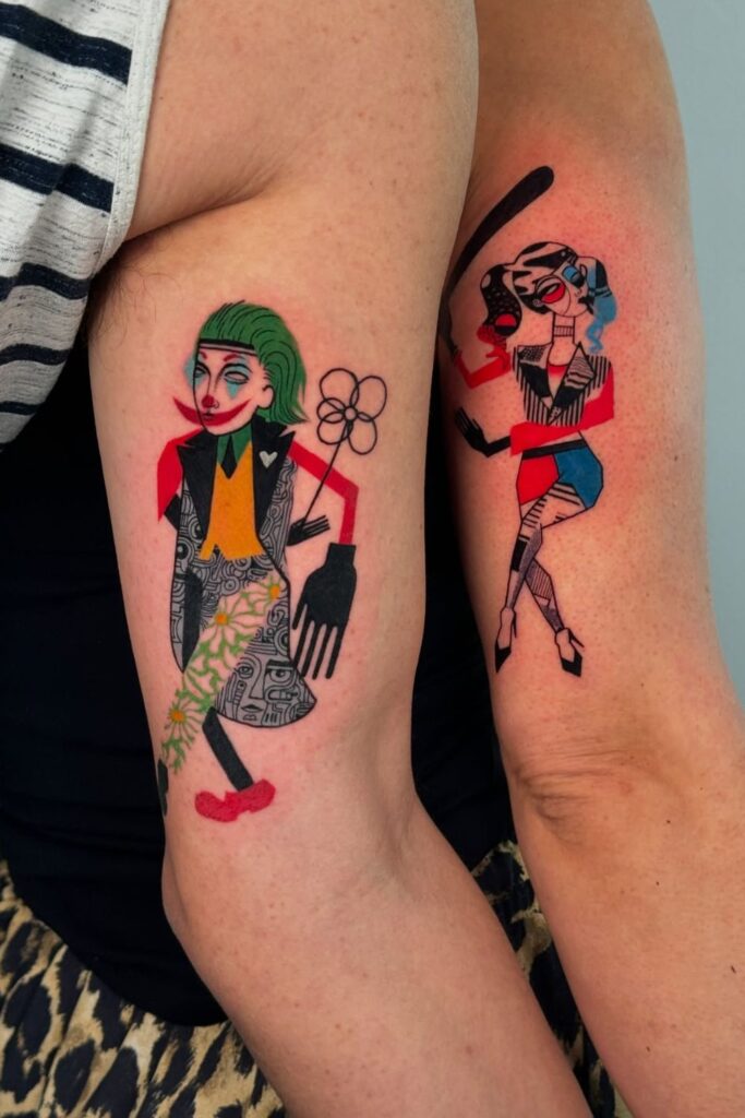 Harley Quinn and Joker matching tattoos are all about celebrating a bond that thrives in chaos.
