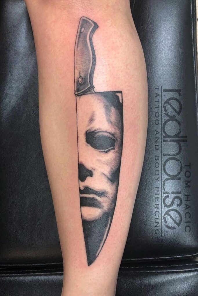 Ideal for fans of the Halloween series, this horror movie tattoo is perfect for those who love clever, minimalist storytelling in their ink.