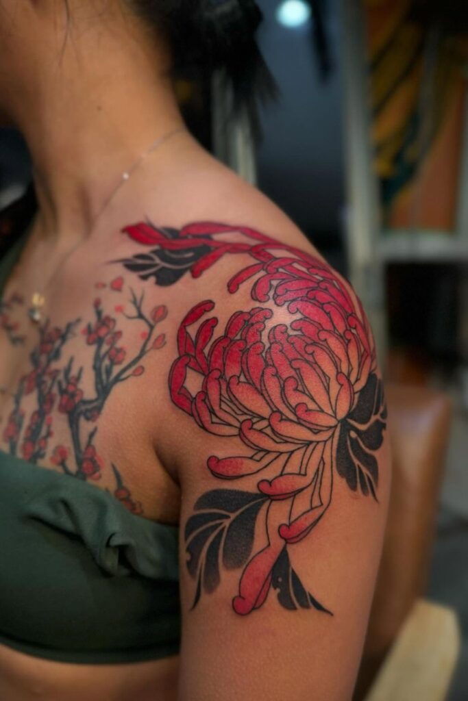 Whether you’re drawn to the grace of cherry blossoms or the bold elegance of chrysanthemums, your tattoo will be a lasting piece of art that celebrates your connection to these profound symbols.