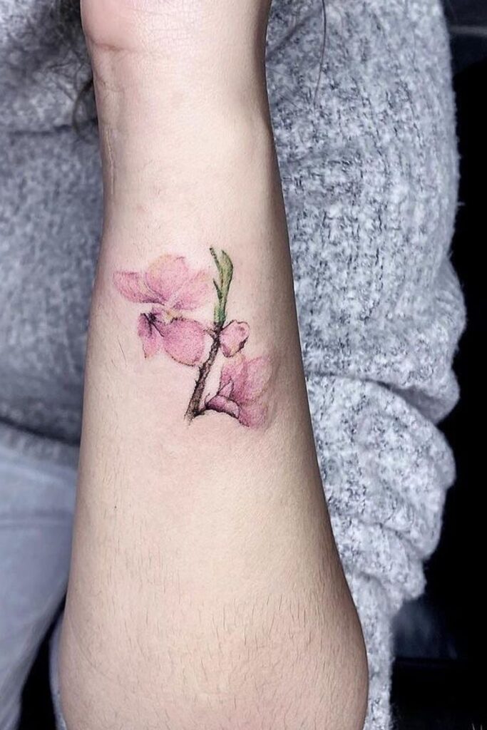 The watercolor-like effect adds a dreamy, modern touch, perfect for those who appreciate subtle elegance in their tattoos.