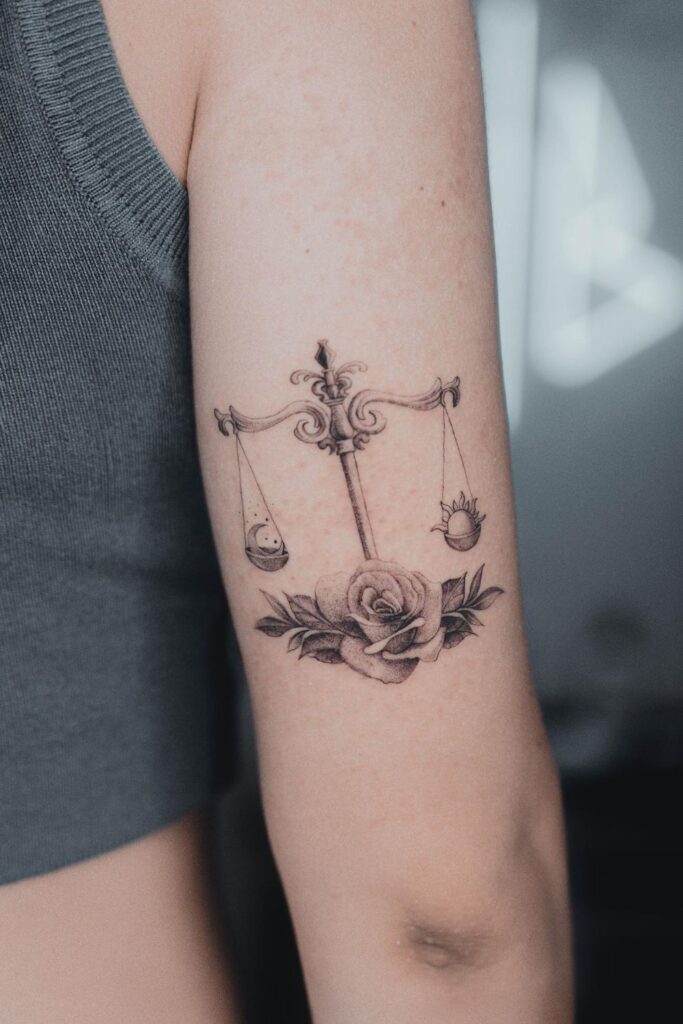 Each design carries its own layer of meaning, making libra zodiac tattoos deeply personal while also visually captivating.