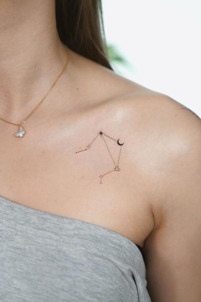 If it’s your first tattoo, a minimalist libra tattoo, like a tiny symbol or constellation, keeps it subtle but still meaningful.