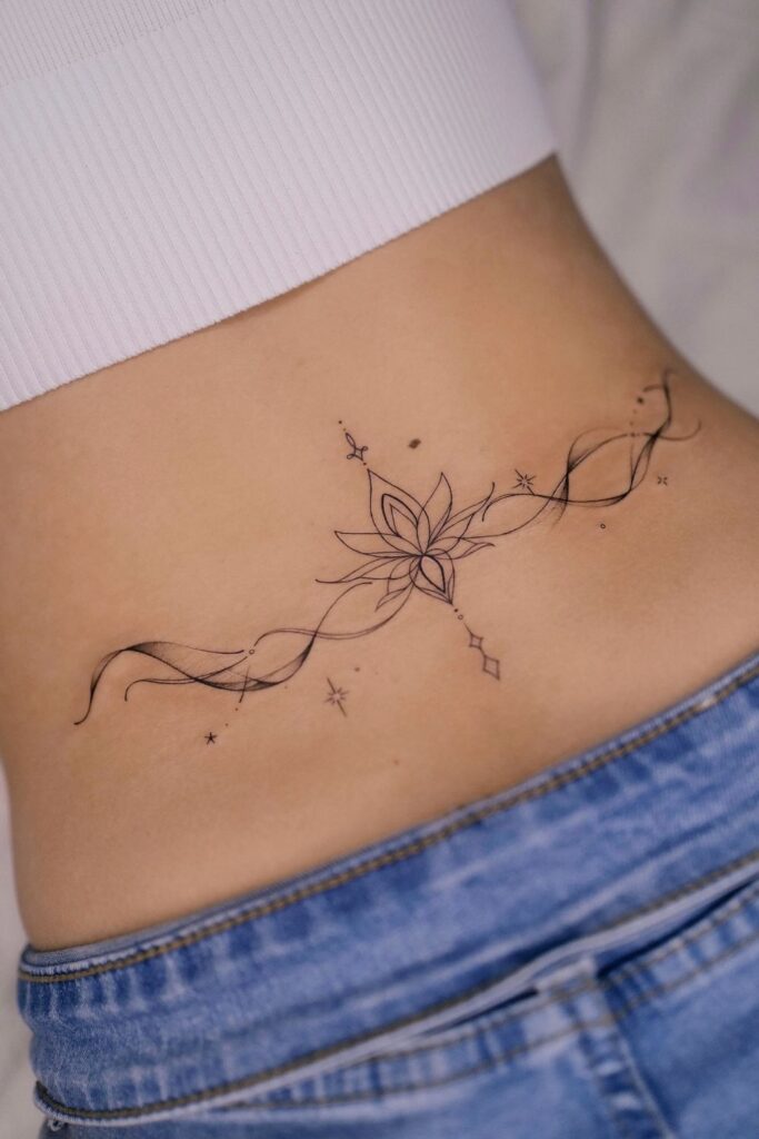 A lotus flower tattoo on hip creates a sensual and feminine look, especially when the petals follow the shape of the body. This placement allows the design to feel intimate and expressive.
