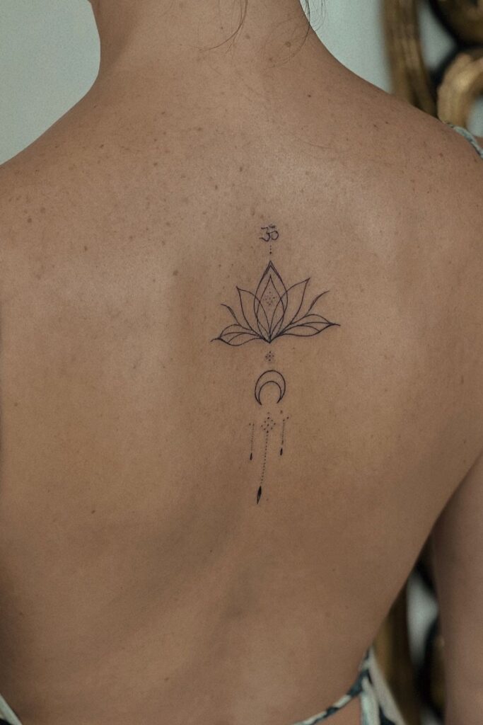 When it sits above or within the petals of the lotus, the tattoo becomes a reminder to stay grounded, present, and aligned with one’s true self.