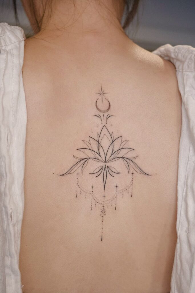 Lotus mandalas typically look stunning as larger pieces on the sternum, back, or thigh.
