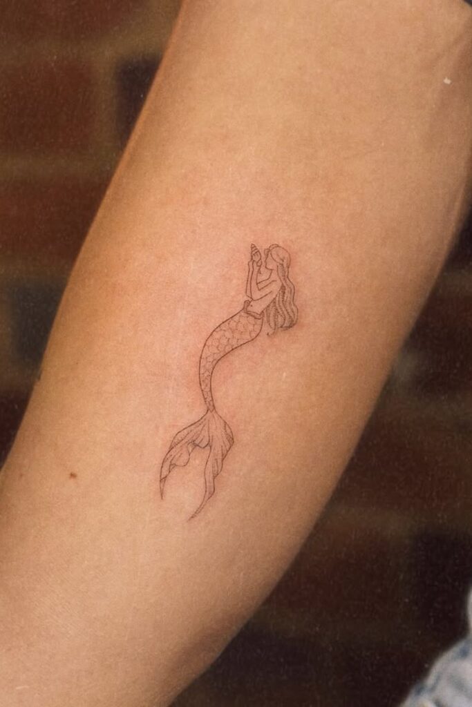 A minimalist design is ideal if you want a simple mermaid tattoo that feels modern, subtle, and effortlessly beautiful.
