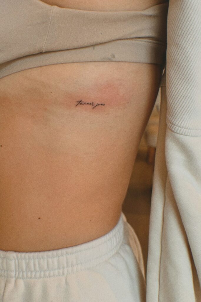 For family, many women choose a child’s name tattoo placement on the arm, collarbone, or ribcage.