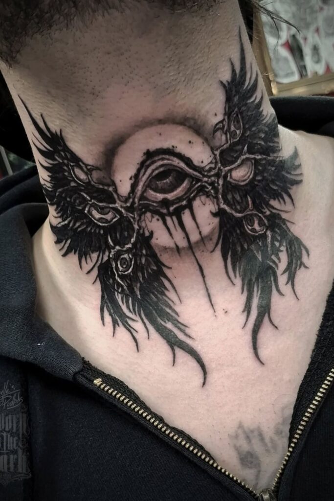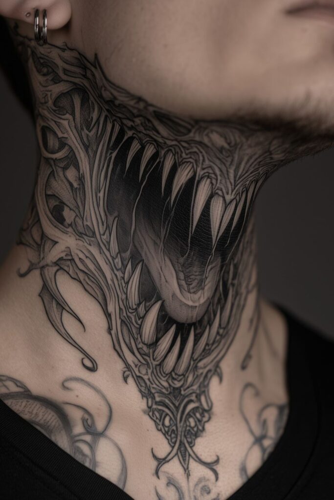 It’s one of the most bold and best neck tattoo ideas for men who love statement art.