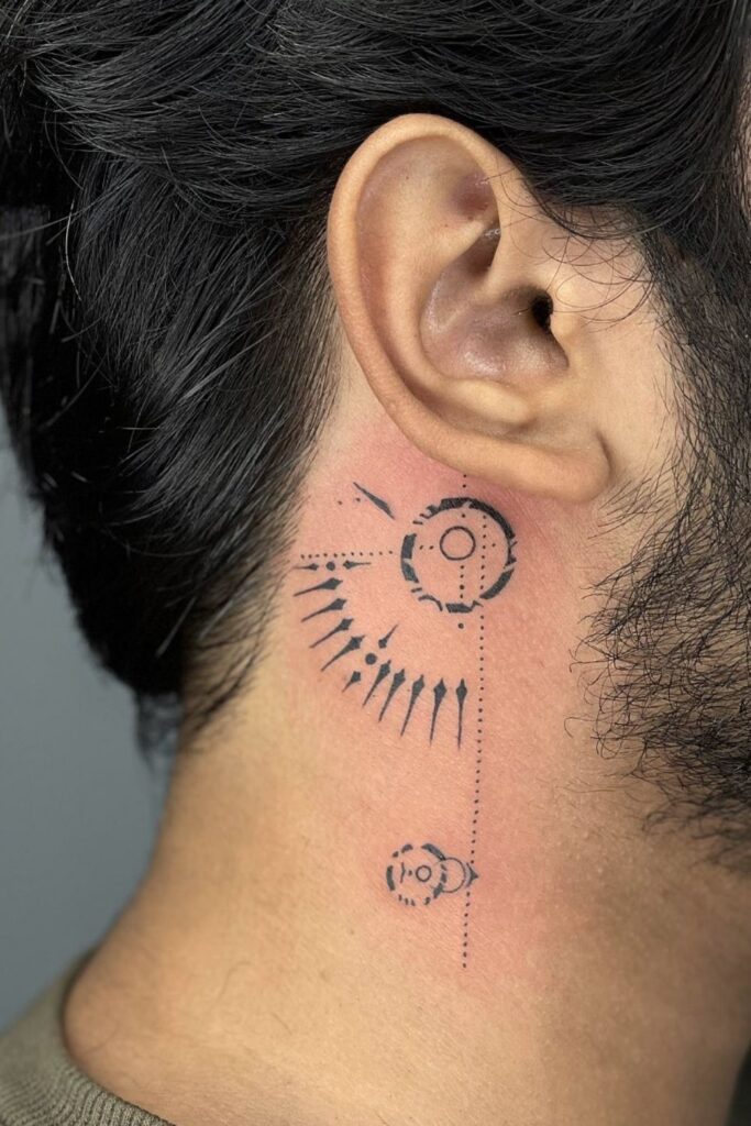 Side neck tattoos for guys are sleek, modern, and versatile. They work beautifully with small lettering, geometric shapes, or detailed linework.