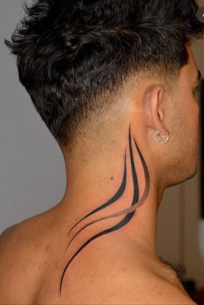 With its artistic curves, it has a masculine and confident vibe, making it one of the best neck tattoos for men who love strong statement designs.