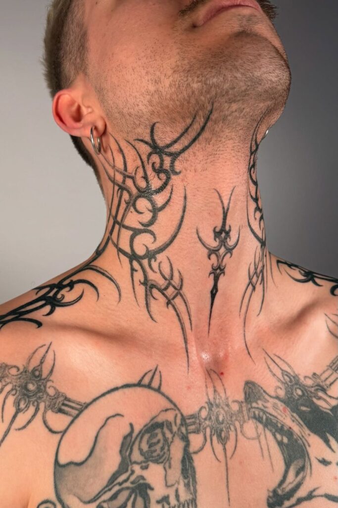 Men’s neck tattoos have become a major trend in modern tattoo culture. More men are using their neck as a canvas to express their style and tell their stories.