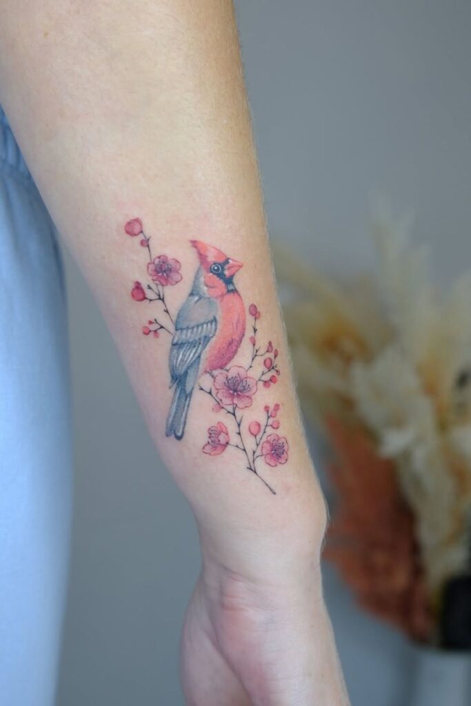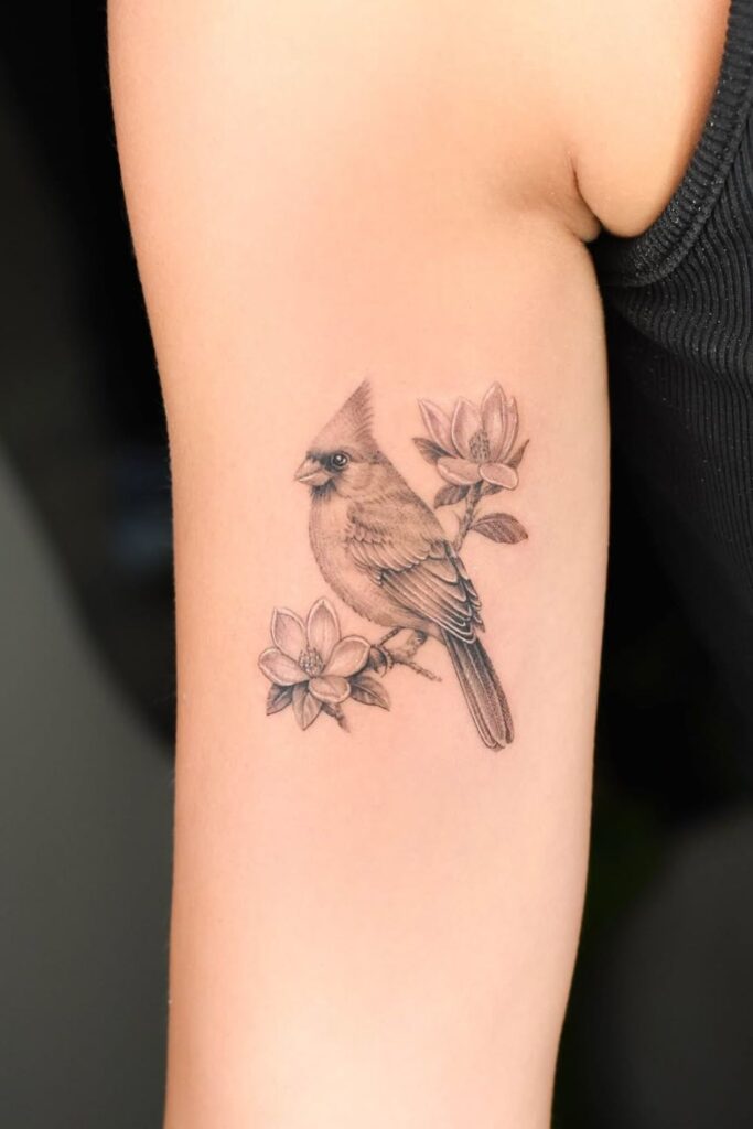 Cardinal And Flower Tattoo Designs That Feel Romantic and Soft