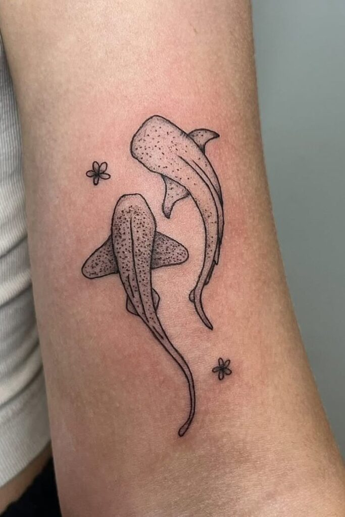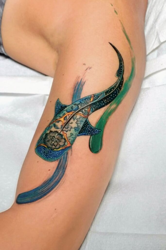 In contrast, the whale shark tattoo meaning carries a softer strength. Whale sharks are enormous yet gentle filter feeders. They symbolize calm power and peaceful dominance.
