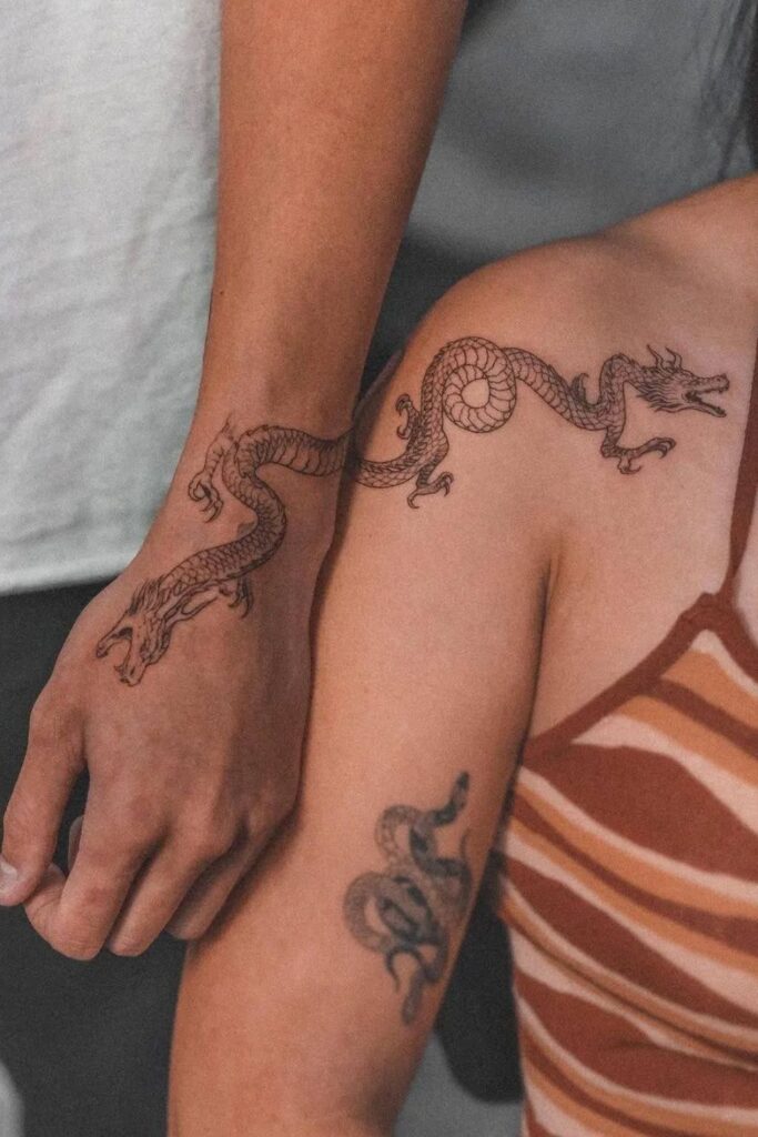 From meaningful quotes like “I am / with you” to protective designs like dragons or heartbeat lines, each tattoo tells a story of connection.