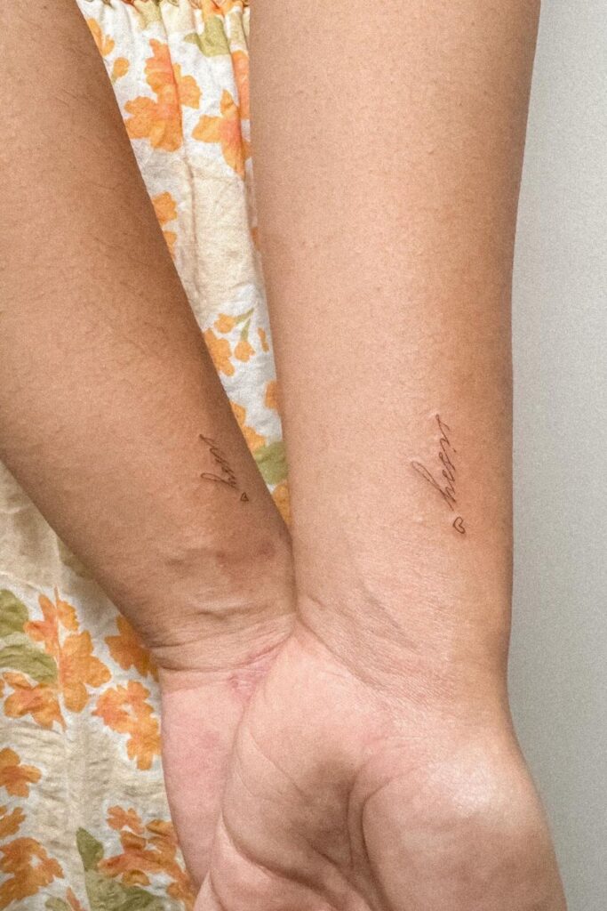 These matching sibling tattoos are small, meaningful, and perfect for celebrating your unique connection.
