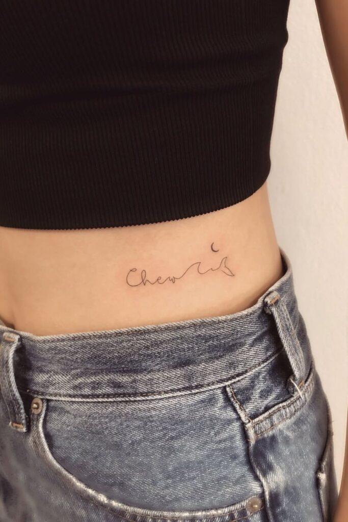 For a more minimal approach, script designs are among the most elegant tattoo ideas for the side of your stomach.