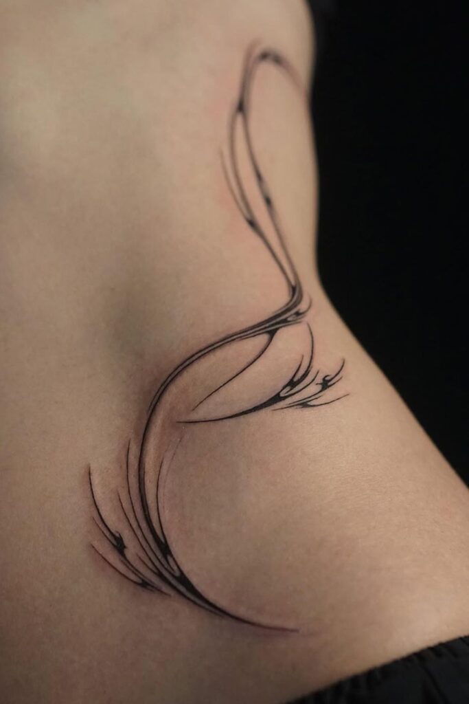 The key with any side of stomach tattoo is movement. It should follow your curves naturally rather than sit awkwardly on the body.