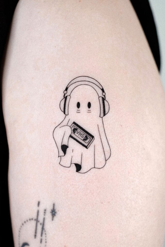 Prefer something more emotional or nostalgic? A ghost mini tattoo holding a VHS tape or reaching out like a memory might speak to you on a deeper level.